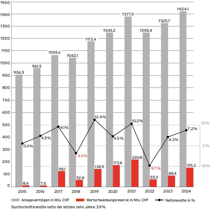 Die Wertschwankungsreserve dient dazu, ungünstige Entwicklungen an den Finanz- und Kapitalmärkten für die Vorsorgeeinrichtung abzufedern. Sie wird in weniger ertragreichen Perioden auf den Kapitalmärkten verwendet, um die Leistungen erbringen zu können, und in guten Zeiten wieder geäufnet. Das Ziel besteht darin, die von den Vermögensanlagen ausgehenden Schwankungsrisiken auszugleichen und eine nachhaltige Erfüllung der Leistungsversprechen zu gewähren.